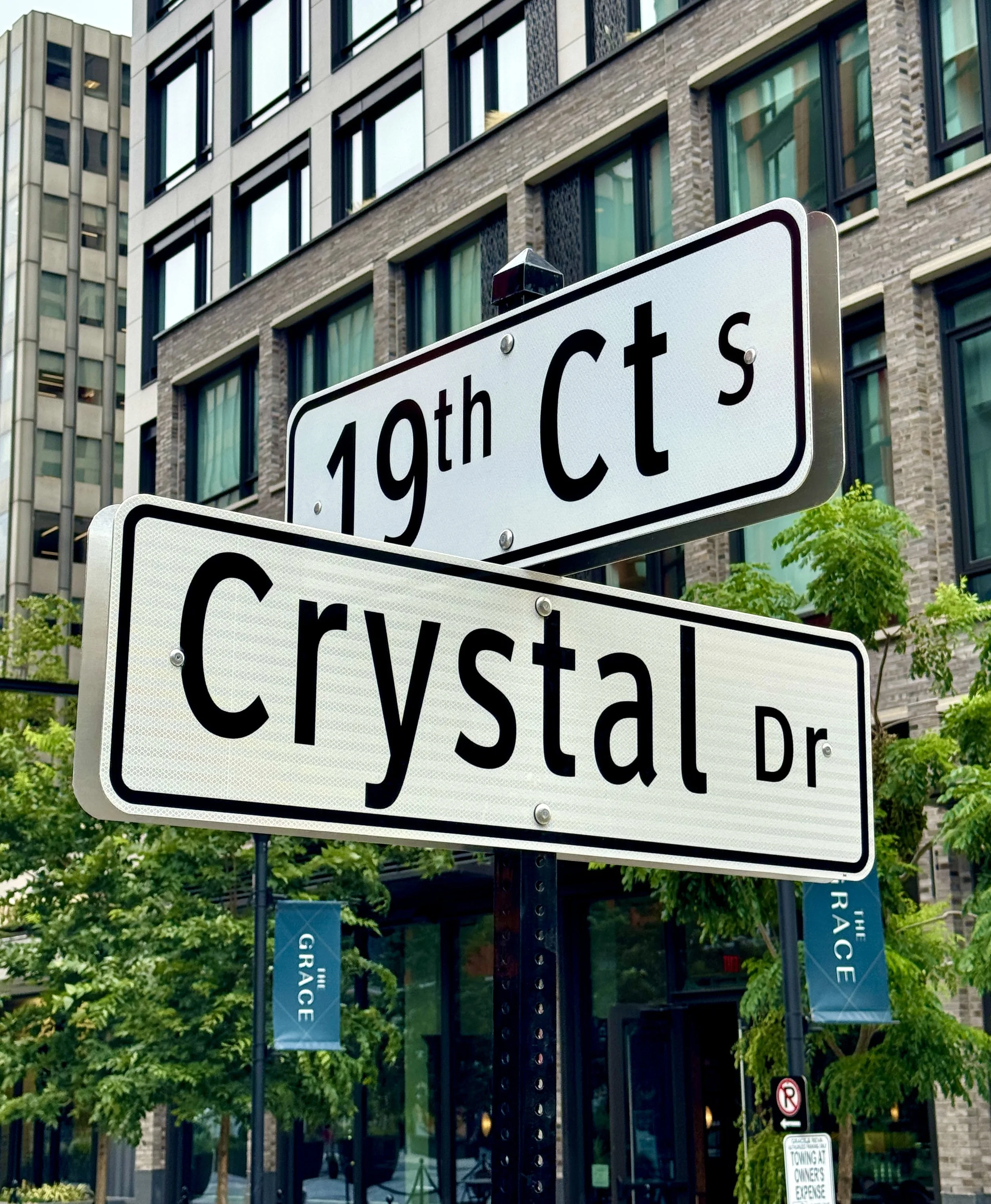 We are located at the 19th CT and Crystal Drive in National Landing, within The Grace and Reva apartment building.